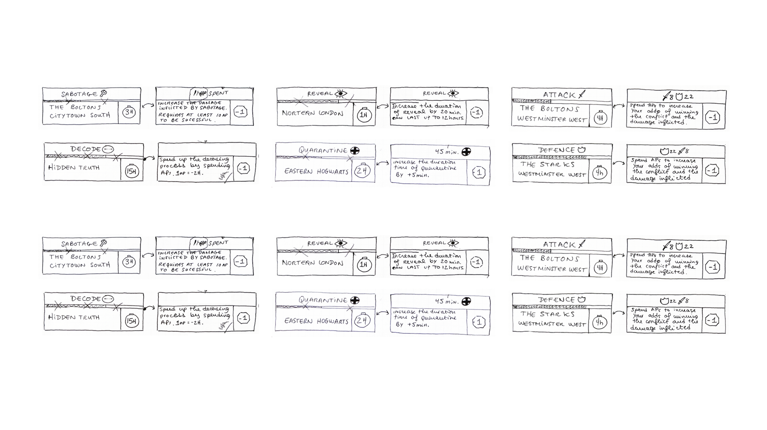 The project needed to support a fast paced promotional campaign while staying true to the Assassin’s Creed universe. Frequent scope changes, social mechanics and district based progression made clarity, strong information hierarchy and cohesive UI patterns essential.